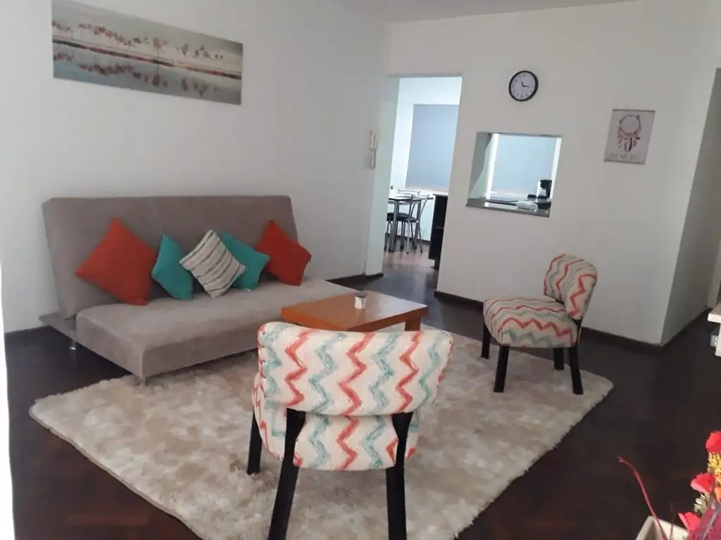 El departamento se entrega completamente amoblado y equipado para cuatro personas, con terminaciones de calidad y funcionalidad optimizada. El dormitorio principal cuenta con cama de dos plazas, placard, mesas de luz y aire acondicionado con vista a calle San Juan. El living integrado presenta sofá cama, rack y televisor de 48 pulgadas.