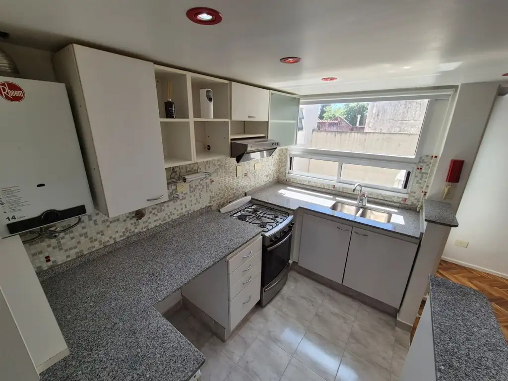 - Living-comedor + cocina integrada con muebles y mesada nuevos; cocina a gas.