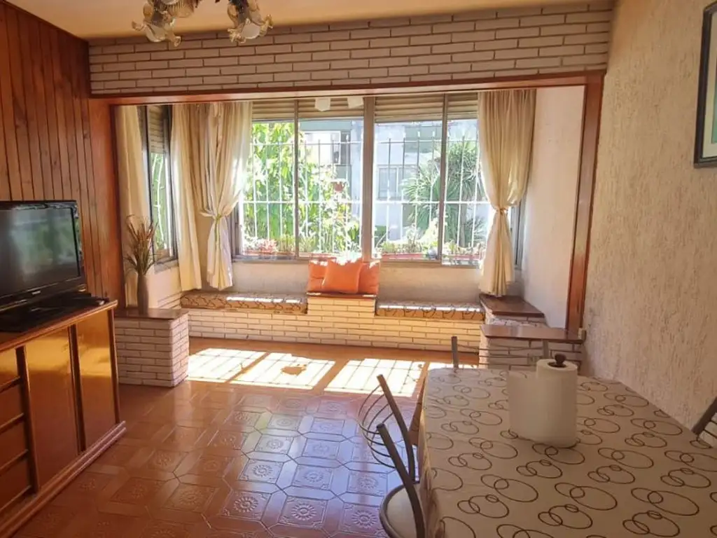 Apto crédito. Departamento 3 ambientes de 58mts totales. 53 m² cubiertos y 5 descubiertos. PBmuy luminoso. (la planta baja esta elevada 5 escalones del suelo). Jardíncompartido con policía. 2 habitaciones con placares completos. Cocina equipada.Balcóncerrado, lavadero. Baño completo con bañera.Cocheras para vecinos del barrio. Expensas $115.000 (Enero 2026)