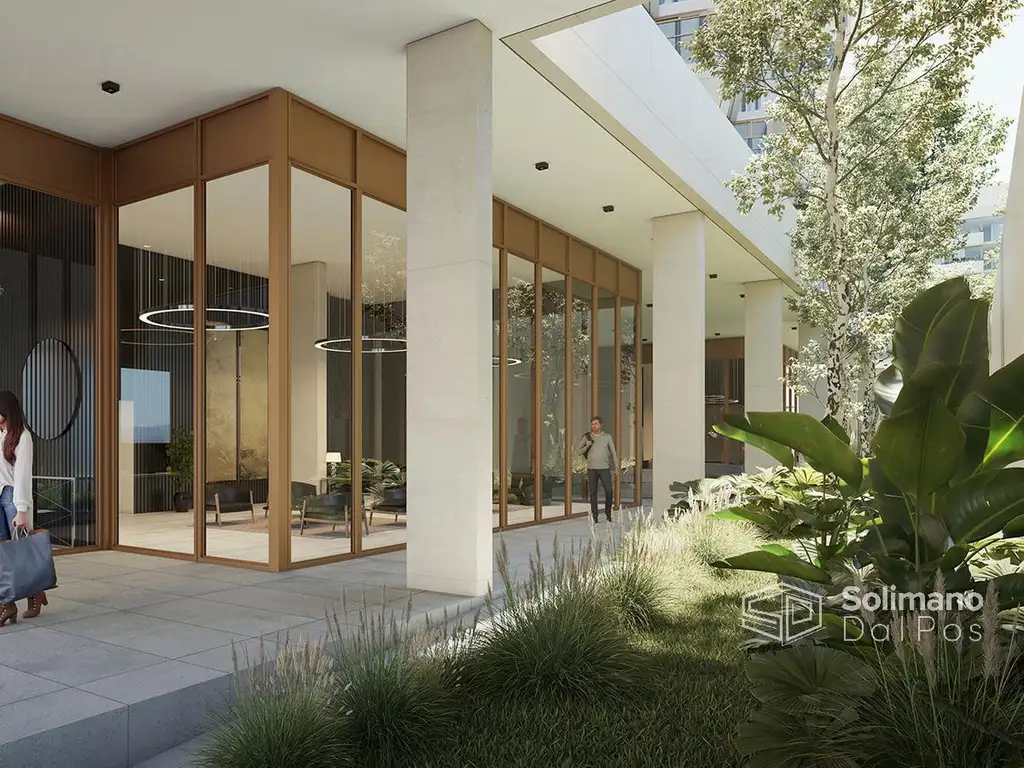 Departamento de 3 ambientes a la venta de 91 metros aproximadamente con 3 balcones, cada ambiente con salida a uno. La unidad cuenta con estar, comedor, y una gran cocina integrados en un amplio espacio de 7.30 x 3.80 metros con salida a un 1er balcón que mira al amplio jardín del emprendimiento. Un dormitorio de 3.70 x 2,90 metros con balcón propio y baño completo en suite. Segundo dormitorio de 3,50 x 2,90 metros y un segundo baño completo con bañadera ubicado para darle uso también como toilette.