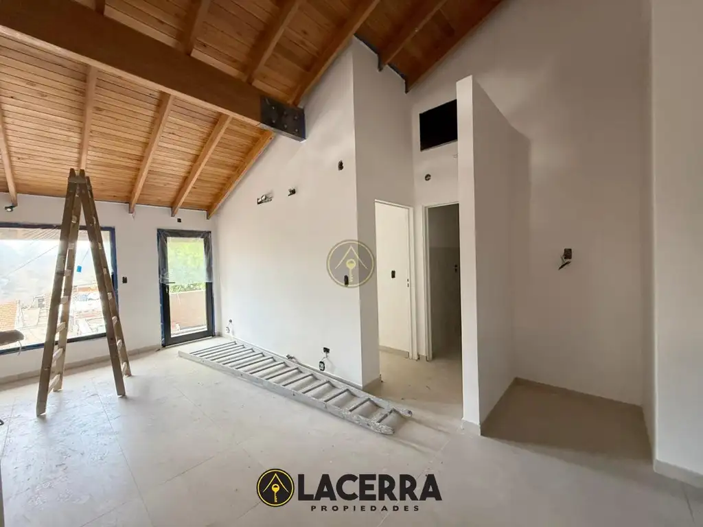 Departamento en segundo piso por escalera, 2 ambientes living-comedor y cocina semi-integrada, baño completo y un dormitorio. Cuenta con terraza propia, con posibilidad de cochera.