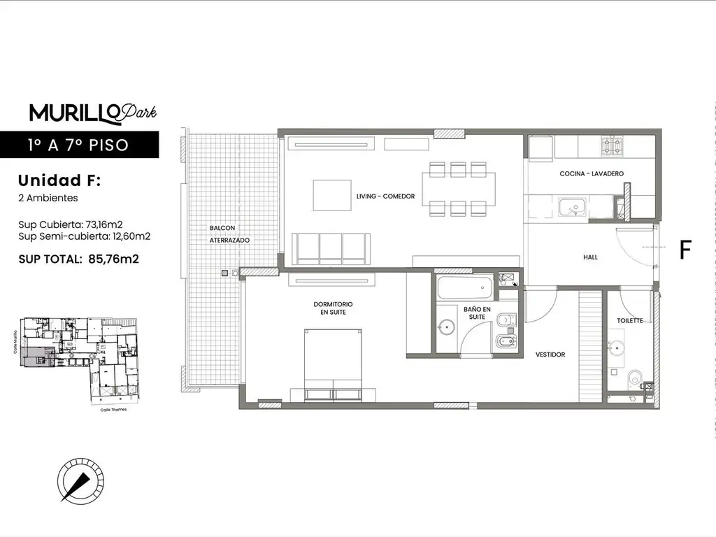 SUPERFICIE CUBIERTA: 73,17 M2 SUPERFICIE SEMICUBIERTA: 12,60 M2 SUPERFICIE DESCUBIERTA: 0 M2