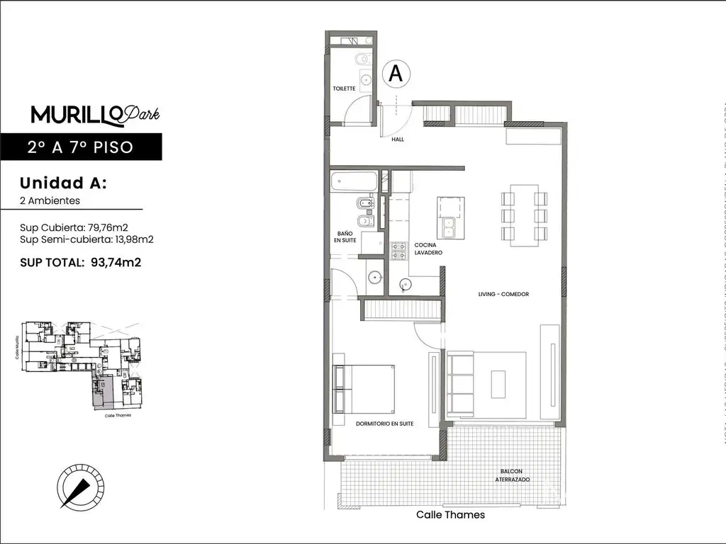 El proyecto Murillo Park se compone de dos edificios integrados con frente a dos calles adyacentes. Murillo esquina Thames.