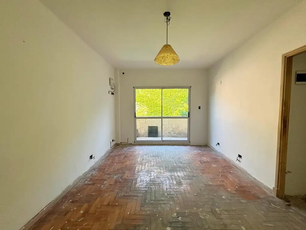 Living comedor y dormitorio con pisos de parquet. (requieren pulido para dejarlo en óptimas condiciones)