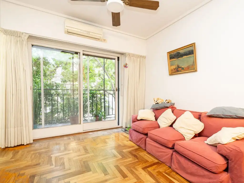 Living comedor con pisos de parquet, amplio y luminoso con salida al balcón corrido y al patio trasero