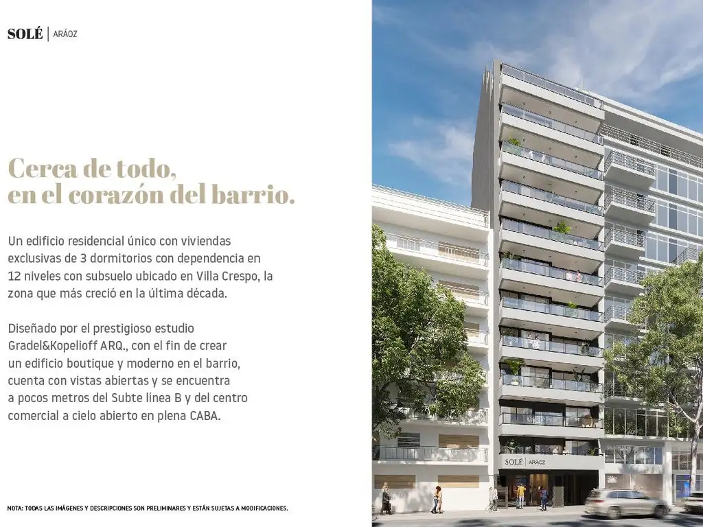 Departamento de 3 dormitorios mas Dep con Terraza Propia en SOLE Araoz -