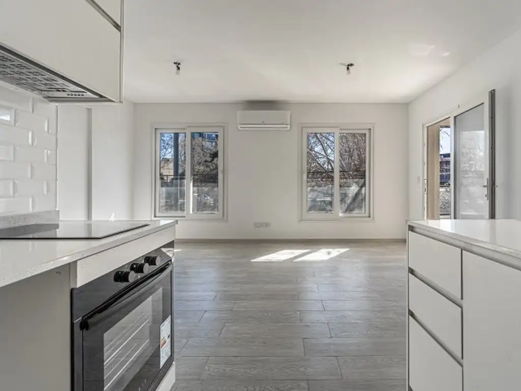 Monoambiente a estrenar 1° piso al frente. Amplio ambiente con salida al balcón. Cocina integrada con barra desayunador. Baño completo. Aire acondicionado frío/calor. Puerta blindada Pentágono, carpintería PVC con DVH, grifería FV, mesadas Silestone y acceso al edificio con llave digital.
