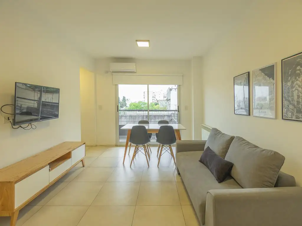 Piso de porcelanato. Cocina a gas, Mesada de granito. Pileta de acero inoxidables con grifería monocomando de 1o calidad FV. Los muebles de cocina cuentan con una bajo mesada y alacena en diseño de melamina con borde metálico. Agua caliente por un termotanque eléctrico individual. Placard construido de piso a techo con puertas corredizas, una hoja espejada y la otra con placa de melamina con cajonera interior. El baño es con revestimiento de cerámica, grifería FV y bañadera con mampara. El balcón es de piso de cerámica de primera calidad. Los palieres llevan pisos de porcelanato. Aire acondicionado frio/calor.