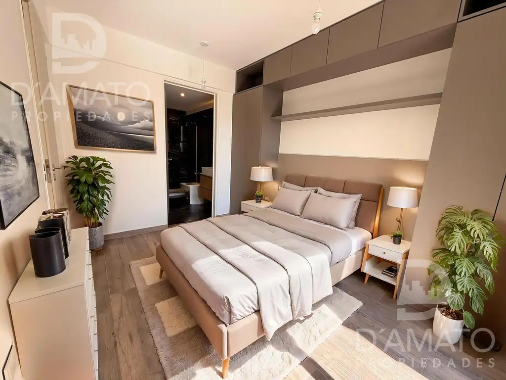 El living cuenta con muy buena iluminación natural y salida a un balcón semicubierto ideal para uso diario. La cocina presenta un estilo contemporáneo y ya incluye horno y microondas instalados, facilitando la mudanza y el uso inmediato del espacio. El dormitorio en suite brinda privacidad y comodidad, mientras que el baño principal se destaca por su revestimiento en porcelanato de diseño, aportando una estética moderna y de alta calidad. Además, la unidad dispone de un toilette, un diferencial muy valorado en departamentos de dos ambientes.
