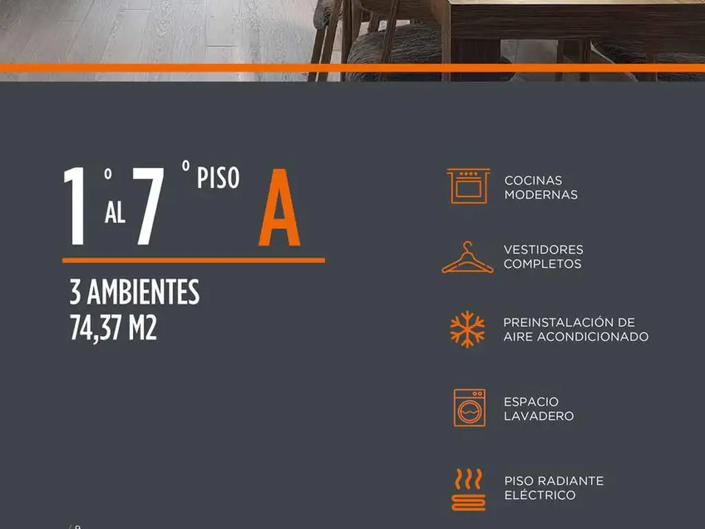 -Piso radiante eléctrico con termostato en cada ambiente.