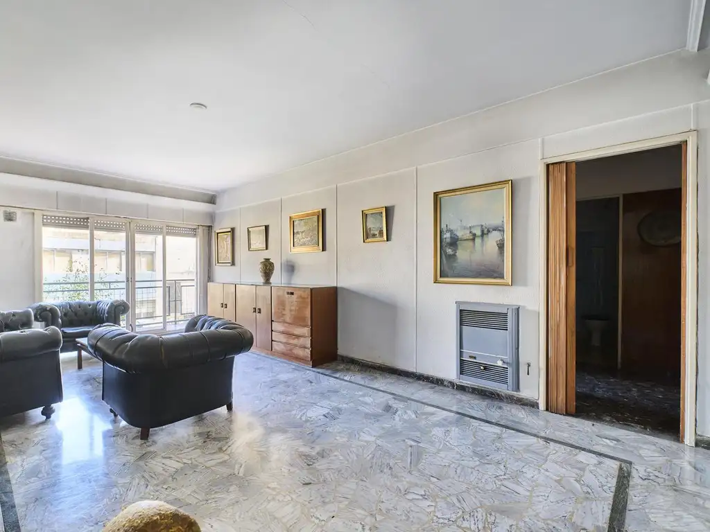 Amplio y luminoso departamento de 4 ambientes con dependencia, de época en buen estado pero a refaccionar, ideal para quienes buscan ambientes generosos y la posibilidad de modernizarlo a su estilo.