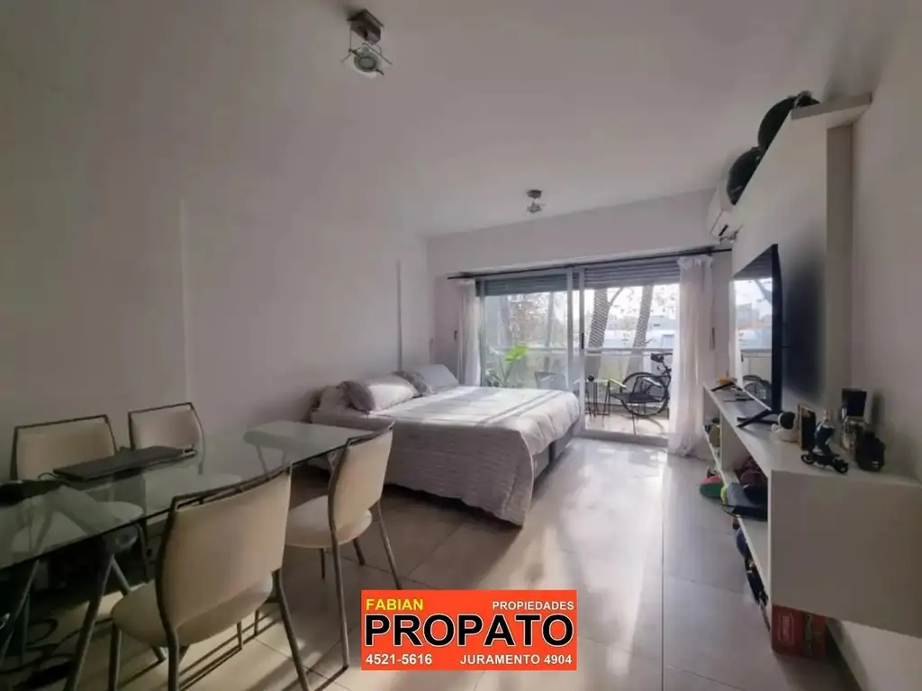 Depto monoambiente moderno al frente con balcon y baño completo con bañera en excelente ubicacion
