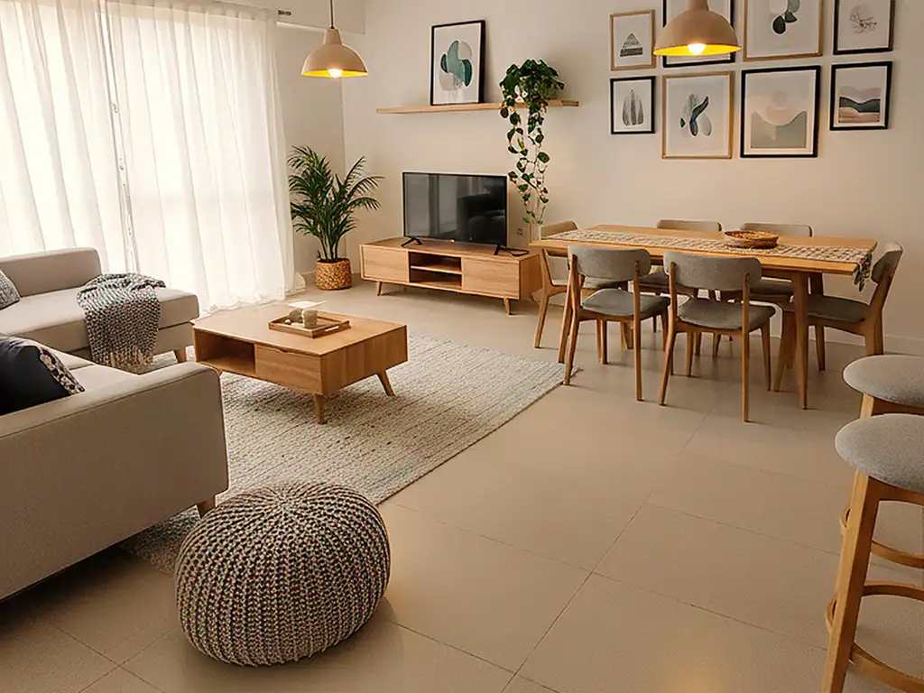 Amplio living-comedor integrado con cocina
