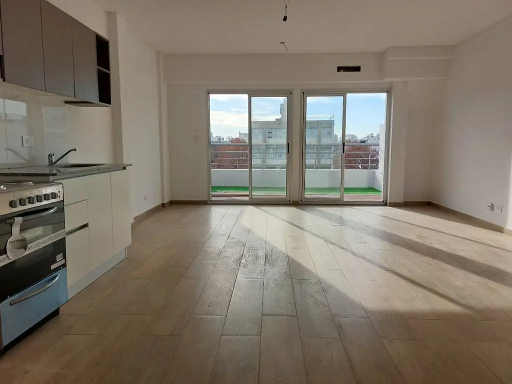 Enorme Departamento monoambiente con superficie de 2 ambientes 43m2 cub + 17,4 m2 balcon terraza privado en Villa Gral. Mitre, a estrenar.