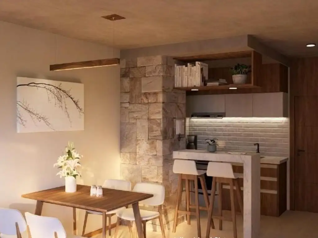 Revestimientos de paredes en texturado acrílico (Revear o similar).- Paredes cerámico primera calidad sobre mesada y cocina.- Pisos de cerámico primera calidad, zócalos de madera.- Cielorrasos suspendidos en placa roca de yeso (durlock o similar), pintado de látex blanco.- Aberturas de aluminio marca Aluar tipo Módena o similar con doble vidrio hermético color negro.- Muebles de cocina bajo mesada y alacenas: cajones con correderas telescópicas y puertas, primera calidad.- Mesada de granito 2 cm con zócalo.- Bacha de acero inoxidable marca Johnson o similar.- Grifería monocomando marca Hidromet o similar.- Losa radiante.- Portero eléctrico.-