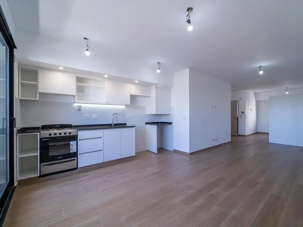 Luminoso y amplio ambiente divisible con cocina integrada, muebles completos altos y bajos. Gas natural. Agua caliente por termotanque eléctrico.