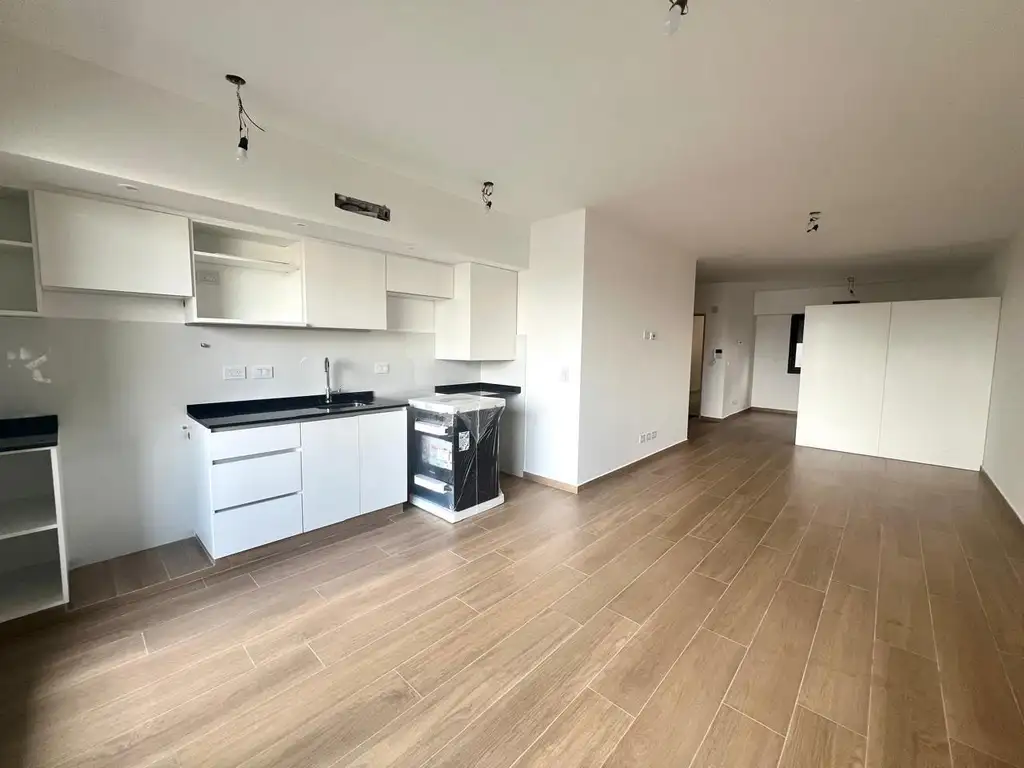 Luminoso y amplio ambiente divisible con cocina integrada, muebles completos altos y bajos. Gas natural. Agua caliente por termotanque eléctrico.