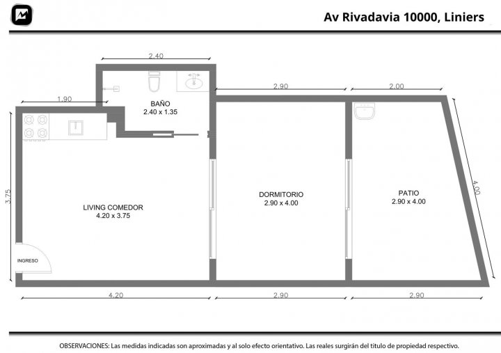 Departamento -Liniers - Monoambiente - Patio - Parrilla - Impecable estado