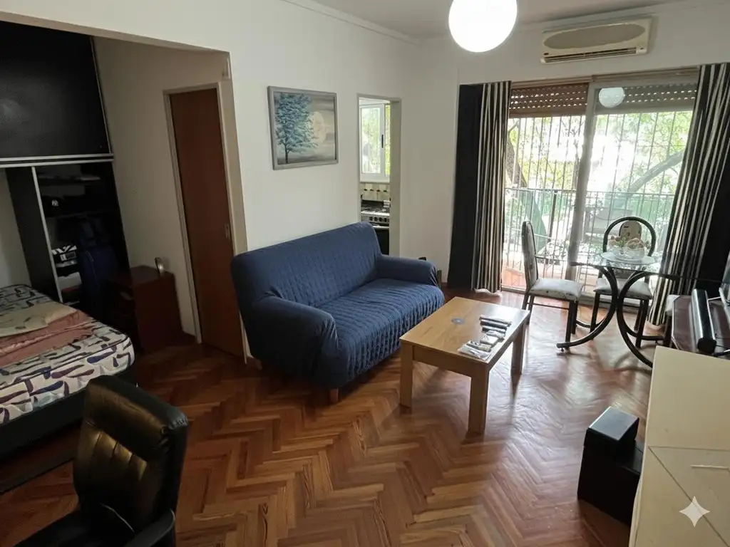 Distribución del living en "L" permitiendo diferenciar zona dormitorio del estar. Cocina separada con dimensiones cómodas y ventilación. Amplio balcón. Todo luz y aire!