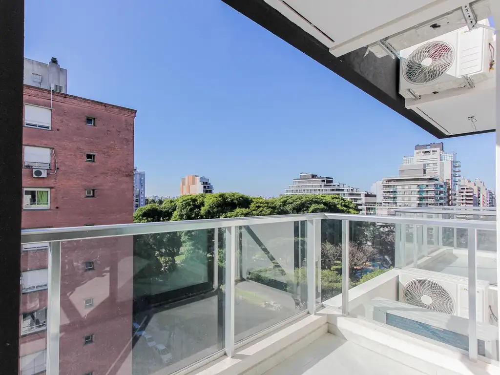 El ambiente principal se conecta a un balcón que es amplio lo que te da la posibilidad de generar un espacio con mesa/sillas, la vista es abierta e inmejorable a la arbolada Plaza Los Andes, ideal para disfrutar del aire libre.La distribución de este departamento es muy inteligente ya que el living y cocina (parte social) se encuentran al frente y el dormitorio en la tranquilidad del contrafrente, dicho dormitorio es cómodo y funcional, con placard empotrado y excelente entrada de luz natural. El baño completo ofrece terminaciones modernas y materiales de primera calidad.