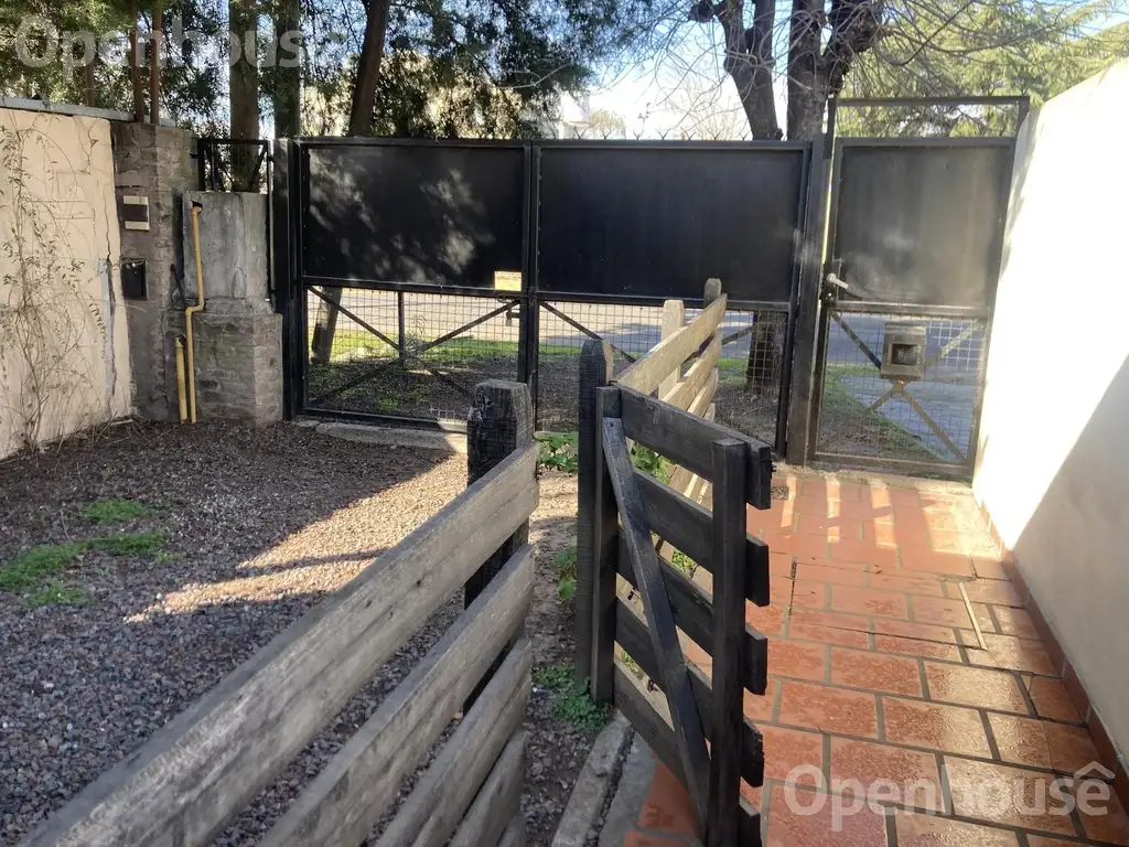 En el exterior en el área del frente cuenta con un portón y entrada para auto, con puerta de ingreso para personas,. En la zona trasera del inmueble yace un jardín de muy buenas dimensiones (apto para extender una futura construcción de ampliación)