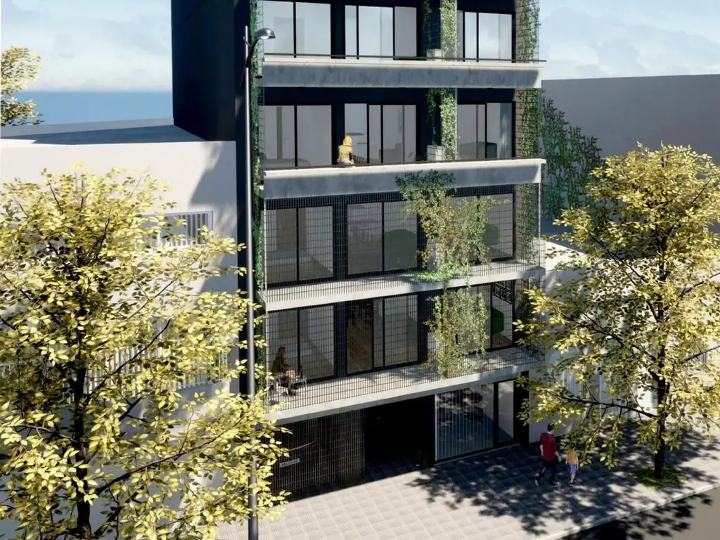 Un edificio apto profesional de 7 pisos y 19 unidades, compuesto por exclusivos departamentos de 38 a 90m2 . En la planta baja se encuentra además del Hall de acceso, una cochera y un local comercial.