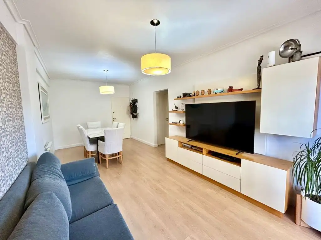 Cocina independiente con muebles bajo mesada y alacenas en madera y mesada de mármol, ventana y espacio para lavarropas. Amplio comedor con pisos flotantes, lo que proporciona un ambiente cálido, cuenta con un gran ventanal con salida a amplio balcón. Cuenta con dos habitaciones, una de ellas con placard empotrado, ambas muy luminosas. Posee baño principal, totalmente equipado con artefactos y moderna grifería, y un toilette en el mismo estado.