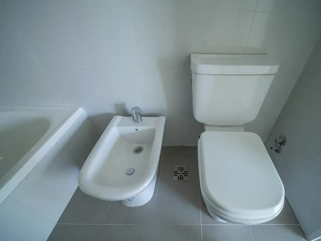 • Sanitarios marca Ferrum Bari con asiento de inodoro.