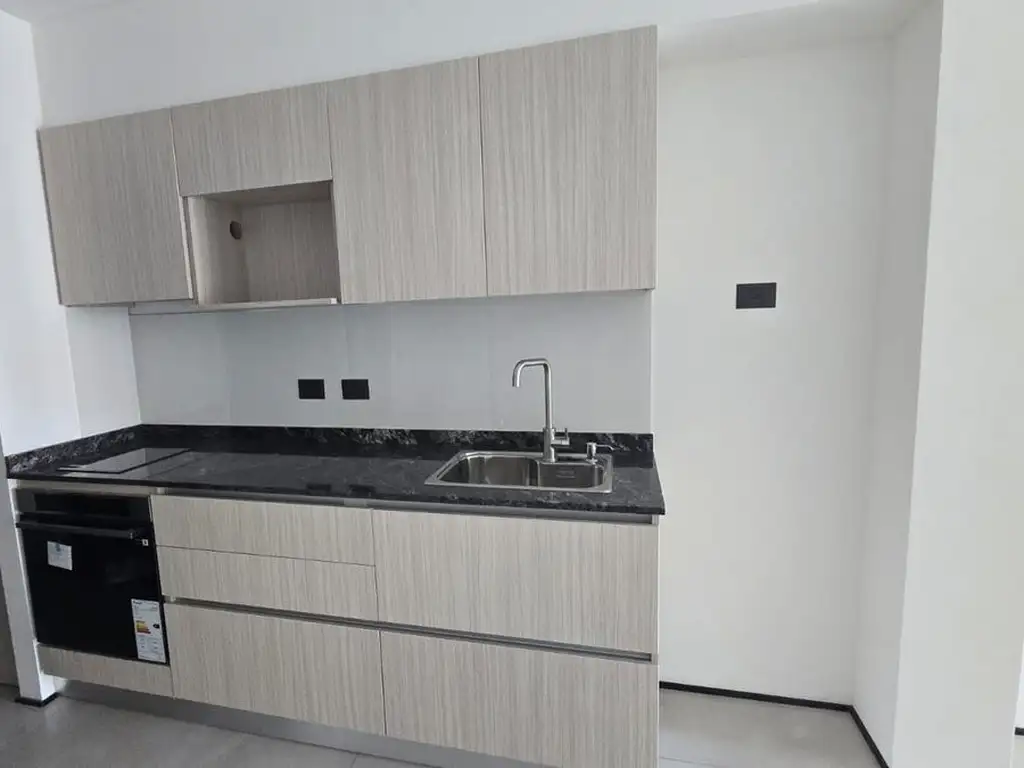 Living-comedor con cocina integrada completa (muebles bajo mesada y alacena), baño moderno, placares de pared a pared, calefacción por piso radiante eléctrico individual, aberturas DVH de alta prestación y pisos de porcelanato.