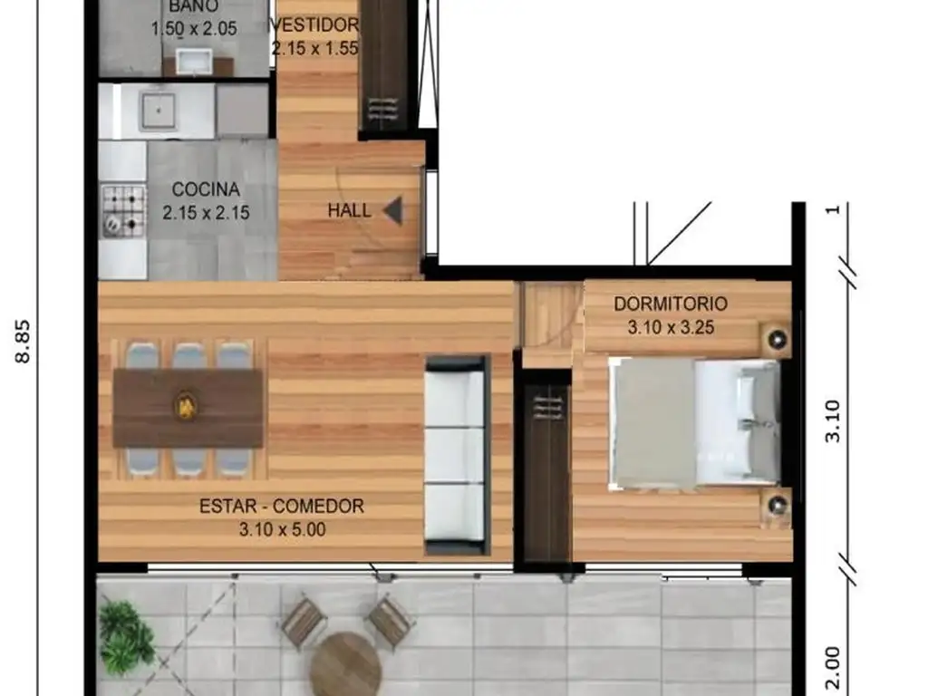 Este edificio combina tres tipos de unidades monoambientes, 2 ambientes y 3 ambientes diseñadas para convivir armónicamente en una misma planta, ofreciendo opciones que se ajustan a distintas necesidades y estilos de vida.