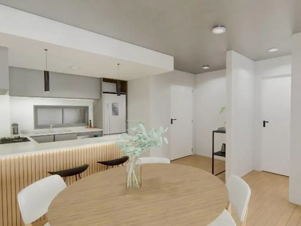Dos ambientes con cocina, una habitación, baño completo, Living-comedor integrado y balcón aterrazado.