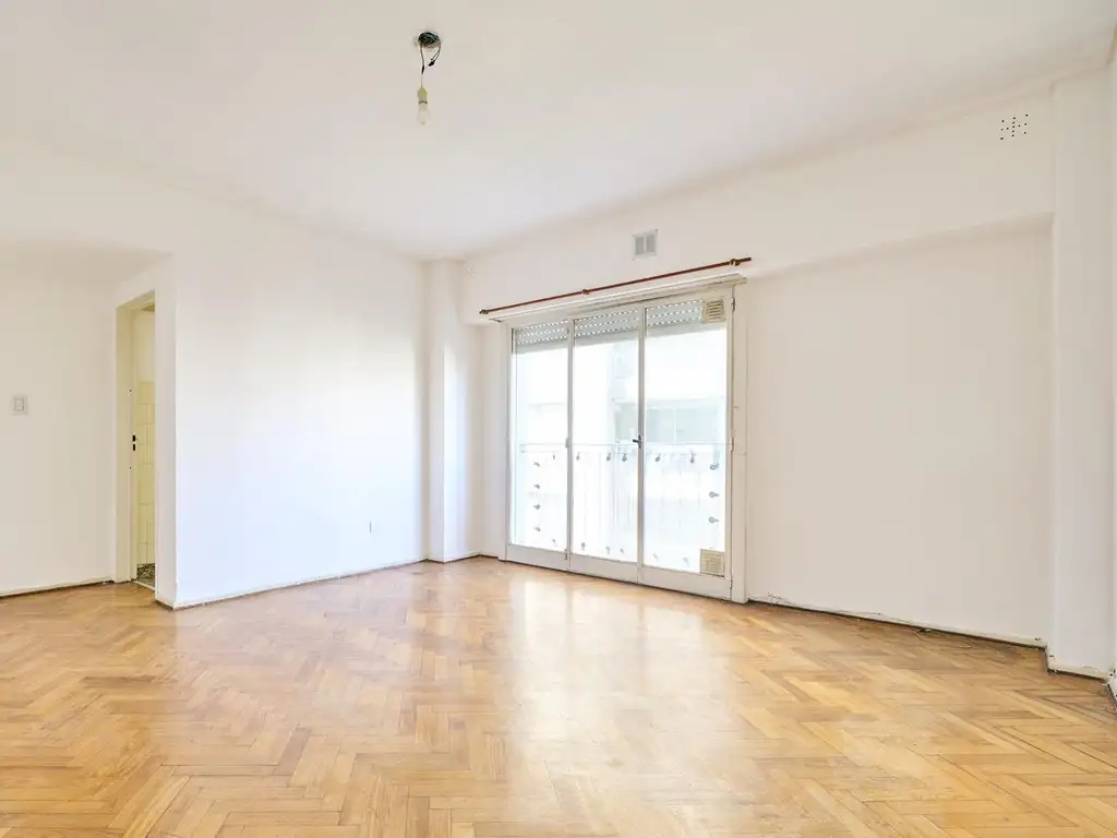 Living-comedor amplio con balcón francés y calefacción por estufa de tiro balanceado.