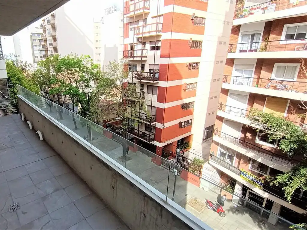 Gran balcón corrido aterrazado con vista a la ciudad