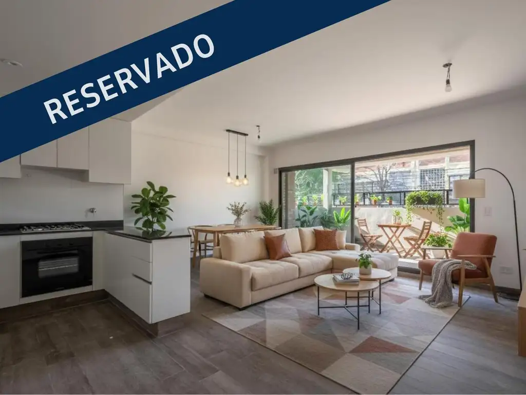La unidad se compone de un living comedor y tres dormitorios con placard, uno de ellos en suite. Tiene un baño completo y un toilette con ducha. La cocina americana está equipada con muebles sobre y bajo mesada, e incluye un espacio para el lavarropas. Los espacios exteriores se distribuyen de la siguiente manera: el living comedor y el dormitorio principal tienen salida a un balcón terraza, mientras que el segundo y el tercer dormitorio tienen acceso directo al patio. Esta unidad se encuentra en el primer piso de un edificio de cuatro pisos, con ascensor.