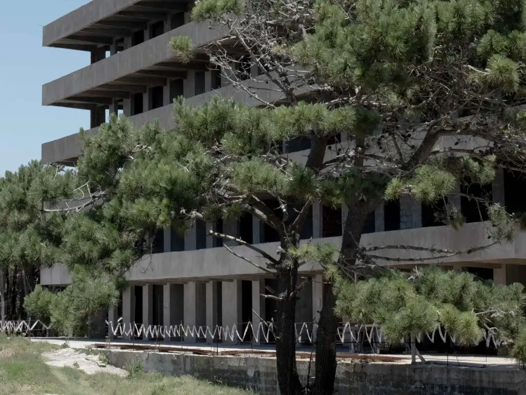 viviendas en altura orientado con vistas hacia el mar, con un interior cedido a la circulación y una parquización más privada.