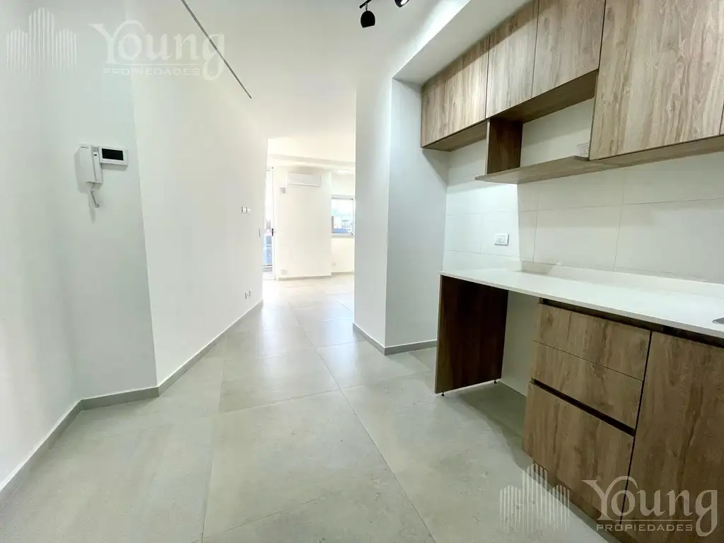 Hermoso y amplio monoambiente. Al entrar a esta propiedad nos encontramos con la cocina, equipada con muebles bajo mesada y alacena.
