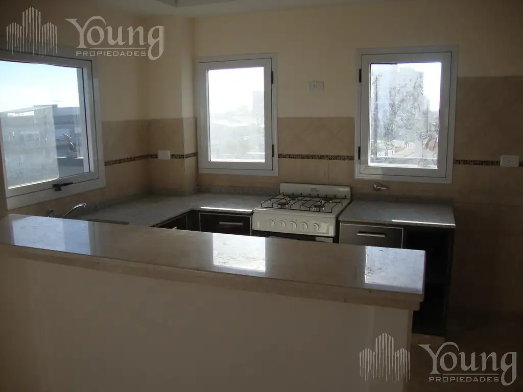 Accedemos a esta propiedad por el living comedor con pisos de cerámica. La cocina, semiintegrada al living tiene barra desayunadora y muebles bajo mesada. Este ambiente es amplio y muy luminoso. Tiene salida a un balcón con buenas vistas. El lavadero tiene mesada.