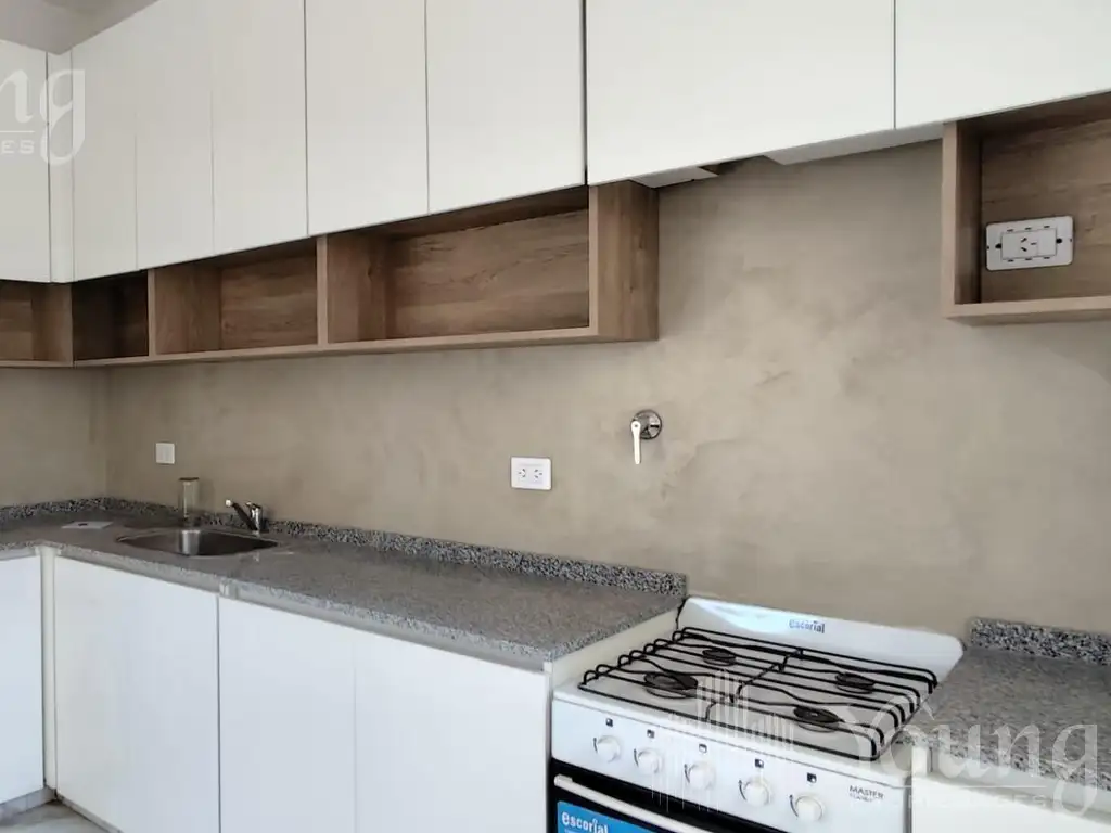 Accedemos por el living, con un gran ventanal y salida directa al fondo. Cocina equipada con muebles bajo mesada y alacenas, mesada de granito, artefacto de cocina, con lugar para comedor diario. Siguiendo por la propiedad nos encontramos con un baño completo con antebaño y dos dormitorios, uno de ellos con espacio para vestidor.