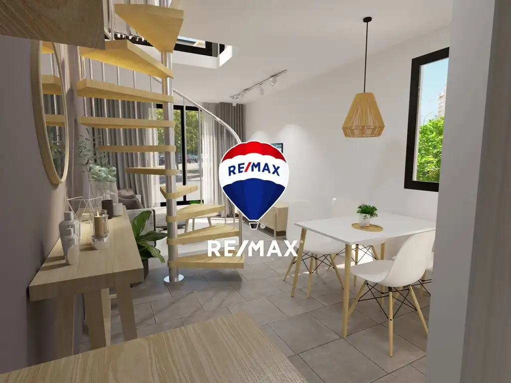 Al ingresar, contará con un pasillo, cocina, baño, comedor, estar, y una escalera caracol que llevará al dormitorio, que tiene salida a la terraza propia.