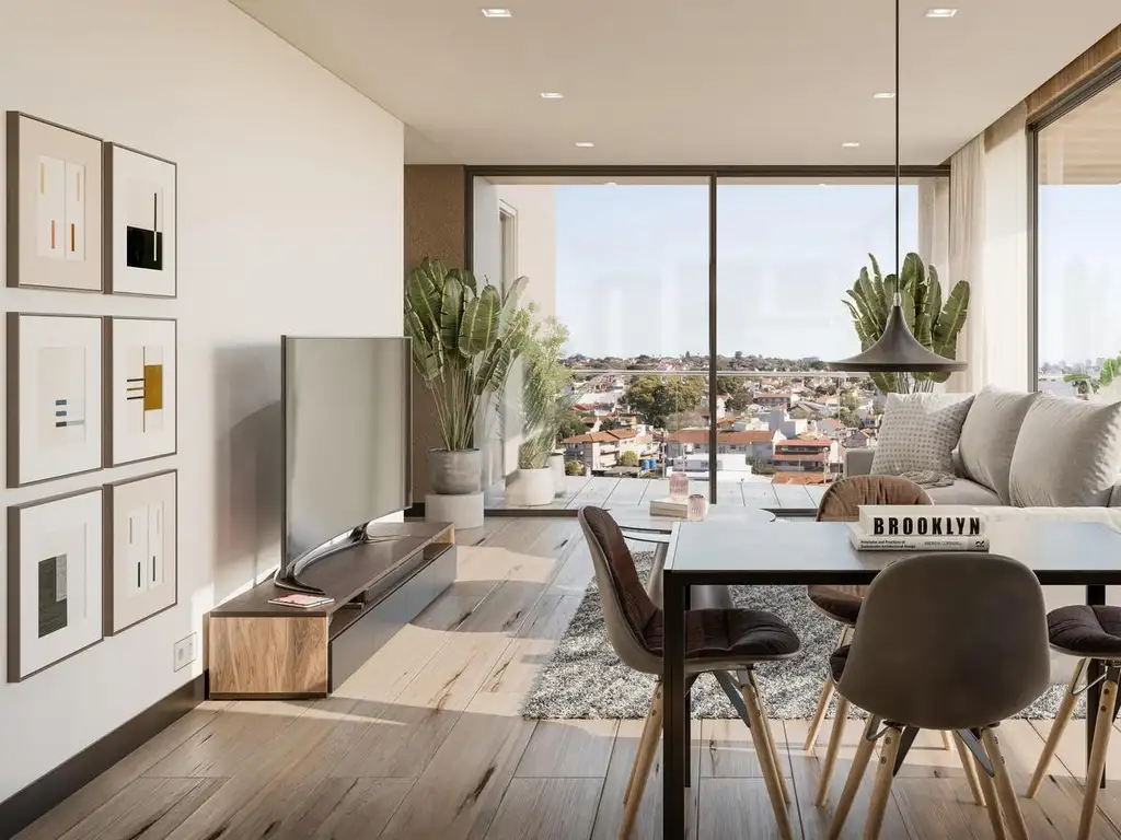 Luminoso living comedor apaisado con salida al balcón con parrilla propia