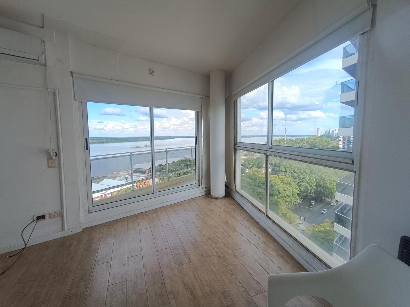 Piso 14 y 15 exclusivo - vista franca al río - tucumán y av. Belgrano superficie: 49 m2 de uso exclusivo entre el departamento y la terraza. El río a tus pies! Oportunidad única en la zona más buscada de rosario. Este departamento en el piso 14 con terraza exclusiva en el piso 15 ofrece una experiencia visual inigualable, combinando diseño, luminosidad absoluta y una ubicación estratégica frente al parque españa. Descripción del inmueble: unidad de categoría con ventilación cruzada y vistas panorámicas al río paraná. Departamento con pisos de ingeniería en excelente estado, grandes ventanales de aluminio que integran el paisaje al interior. Salida a balcón corrido con barandas vidriadas. Cocina: integrada/semicubierta con amoblamiento moderno, mesada de granito gris mara, bacha de acero inoxidable y anafe de 2 hornallas. Íntimo: baño completo con bañera, revestimientos cerámicos y detalles en guarda de venecitas. Grifería y sanitarios de primera línea. Climatización: equipo de aire acondicionado split instalado y calefactor a gas. Terraza: el departamento cuenta con una terraza de uso exclusivo que incluye una piscina/jacuzzi exterior, ideal para el relax con la mejor vista de la ciudad. Ubicación privilegiada: esquina tucumán y av. Belgrano. A pasos del río, centros gastronómicos y el centro financiero de rosario. Zona de altísima demanda para alquileres temporarios (airbnb ready) o vivienda permanente de categoría.