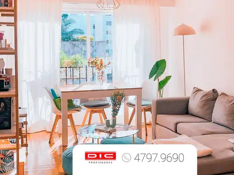 Living-comedor de 7,5x4,5m (pisos en parquet); hall amplio, ideal escritorio; 2 dormitorios de 3x3,1m con placares; baño completo (reciclado a nuevo); cocina de 2,1x2m con muebles completos y lavadero.