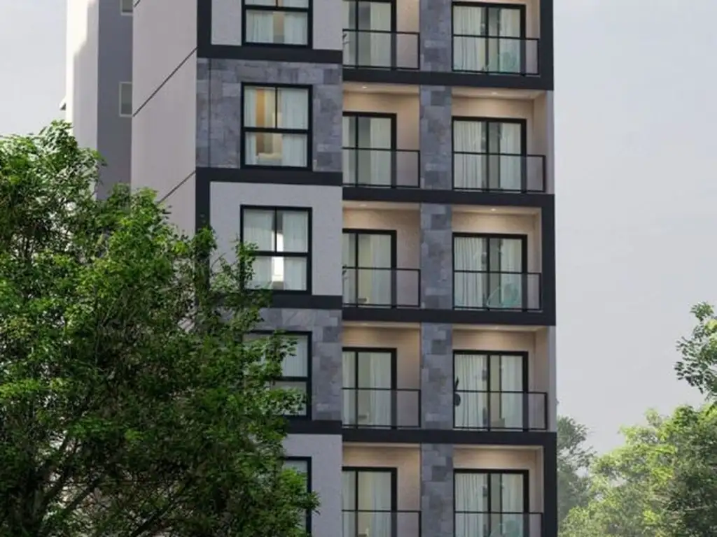vivienda, un mono ambiente y dos ambientes al frente y un dos ambientes en el contra frente. En 8º piso se planteó un espacio común de usos múltiples (S.U.M) con parrilla e hidromasaje.