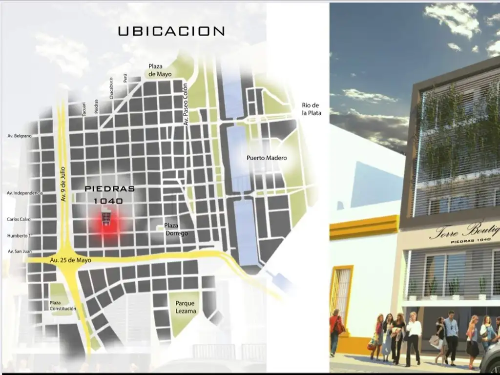Departamentos a estrenar de 1 y 2 ambientes en corazon de San Telmo, ubicado estrategicamente a metros de Plaza Dorrego, a 200 de Av. 9 de Julio y 800 m de Puerto Madero. Pensado en el turismo receptivo,