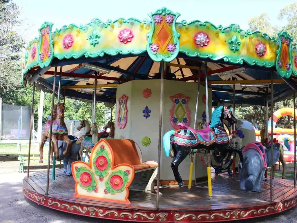 - Carrousel/calesita de 6 mts. Diámetro. 15 figuras (10 móviles), capacidad 22 niños, con su automatismo, motor/variador e Iluminación.