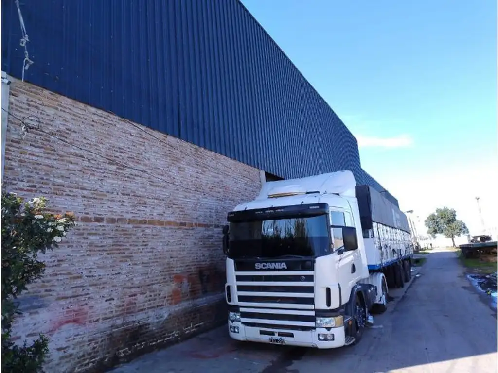 Excelente galpón de construcción sólida con estructura de ladrillos y techo de chapa a dos aguas, alcanzando una altura máxima de 10 metros en el centro.