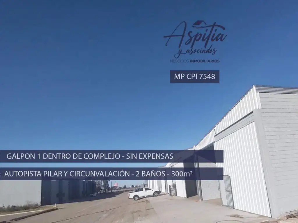 Alquiler de galpón industrial de 300 m² en complejo de naves industriales, ubicado estratégicamente con acceso inmediato a Autopista Pilar y Avenida de Circunvalación. Sin expensas. Disponibilidad inmediata.