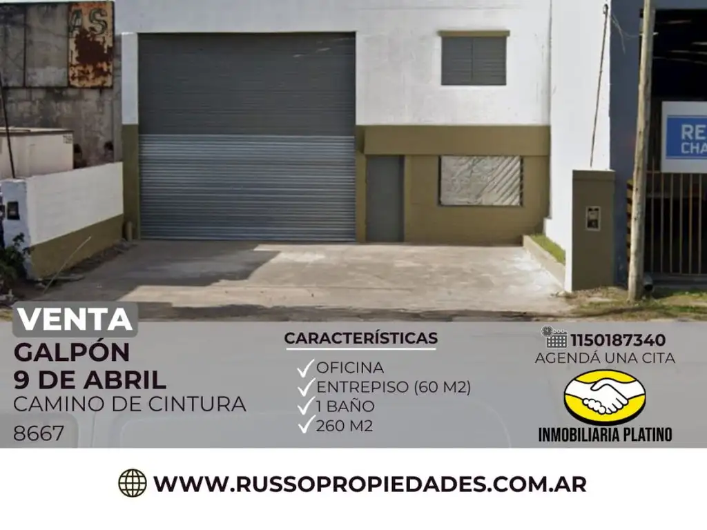 Alquiler de galpón de 260 mtrs mas entrepiso de 60 mtrs, cuenta con baño y oficina