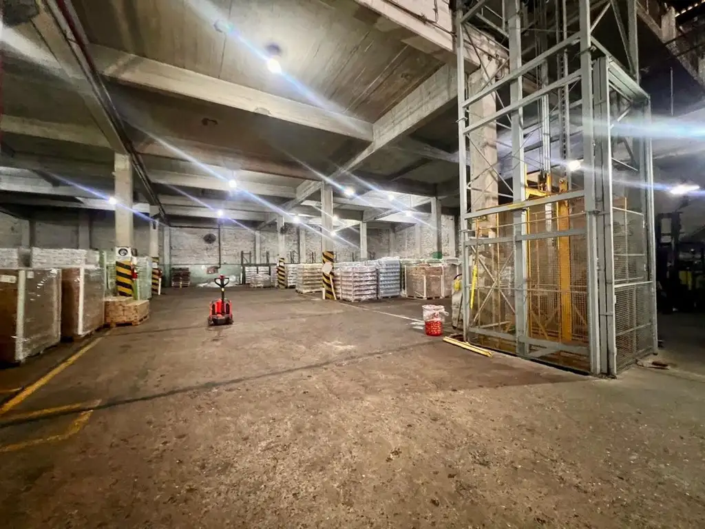 Portón apto ingreso de camiones, altura aprox 5 metros. Montacargas para 1.500 kilos.