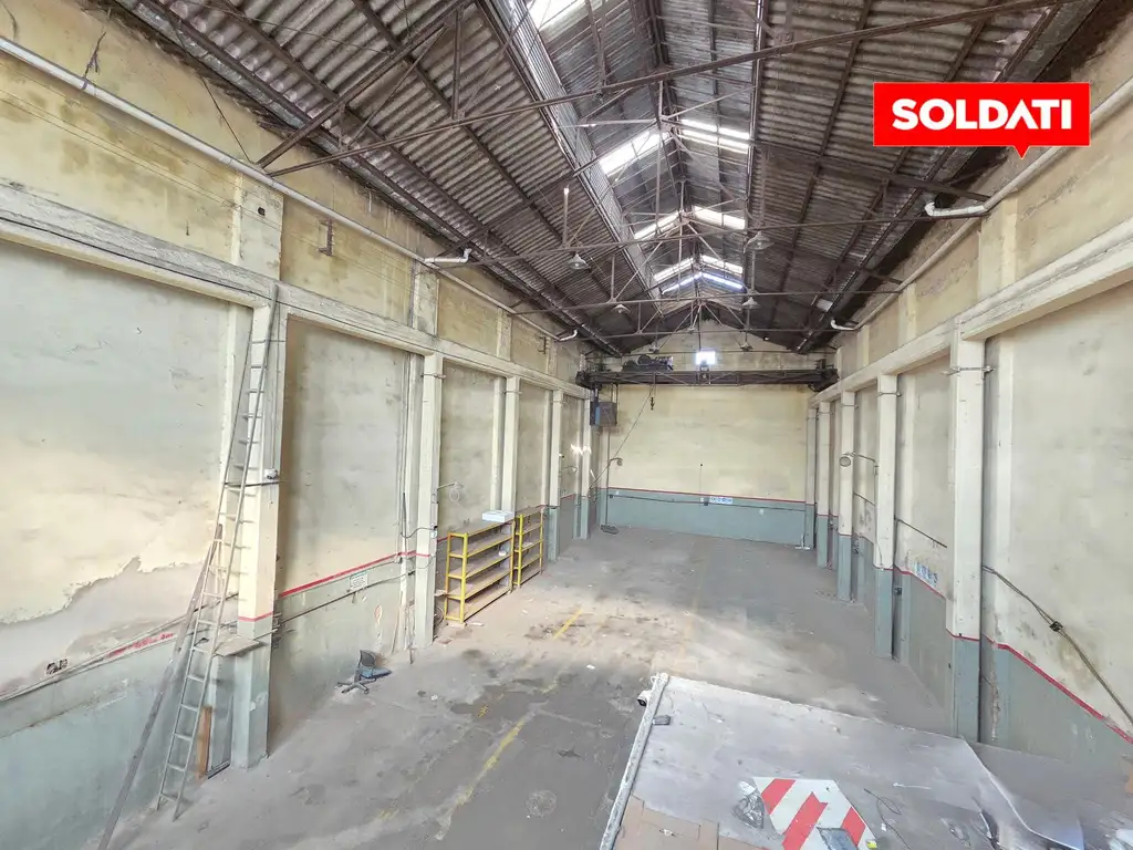 - Nave principal: Galpón de estructura metálica con techos altos de chapa acanalada, vigas de acero y lucernarios que aportan iluminación natural. Equipado con luminarias industriales.